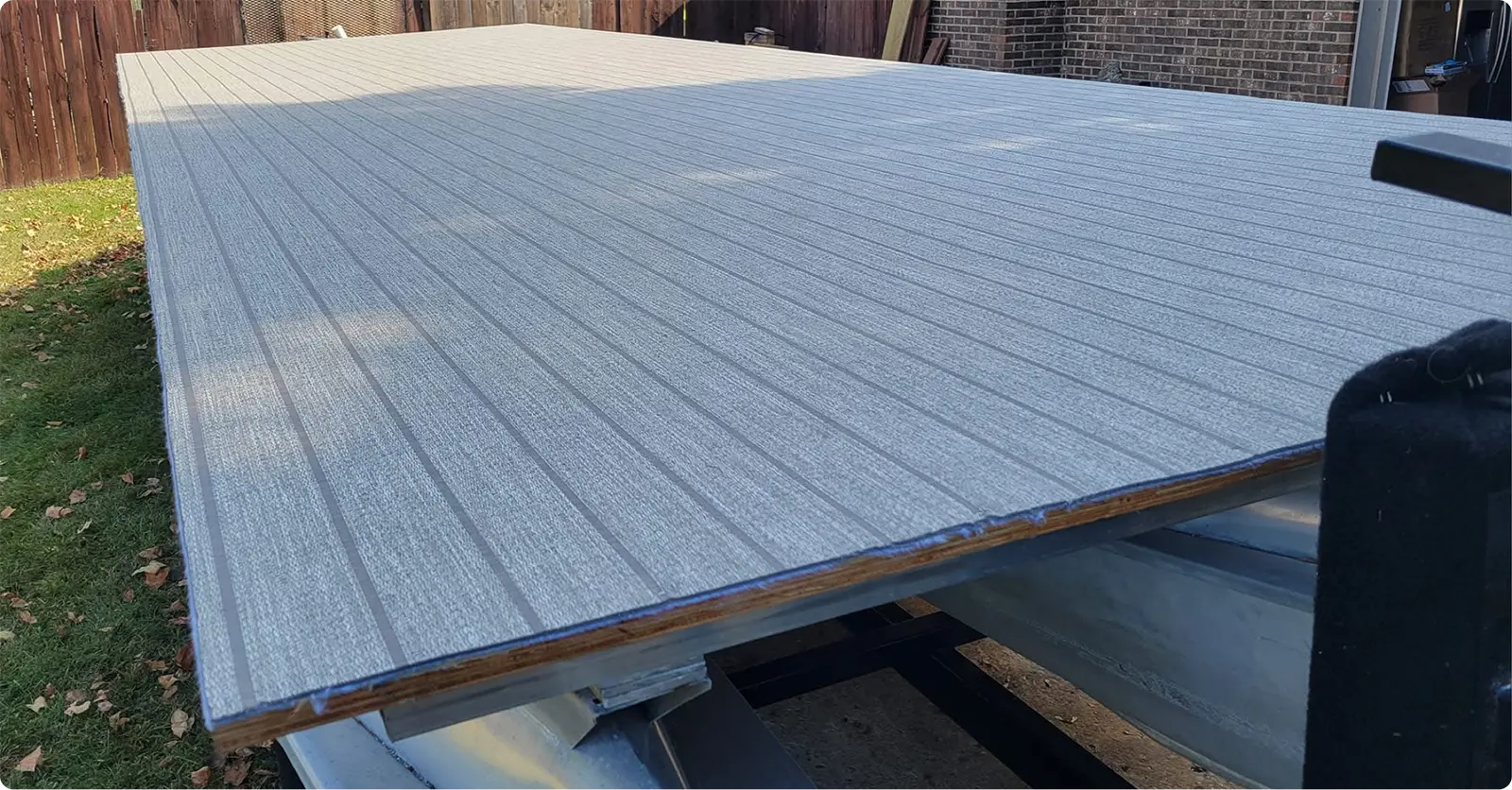 Worn carpet, soft plywood, or water damage are signs it’s time to replace both decking and flooring. Old plywood can rot from the inside out, compromising structural integrity and creating soft spots underfoot. Marine-grade plywood paired with fresh vinyl flooring or carpet provides a solid, water-resistant base for everything that follows. Replacing flooring during a full rebuild is easier and more cost-effective than doing it later.